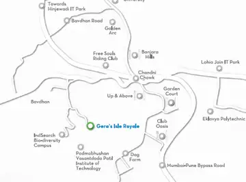 Social amenities in the vicinity include Manipal Hospital, Hinjewadi Hospital, Ruby Hall Clinic, Lifepoint Multispecialty Hospital, Golden Arc, Fergusson College, Choice College of Arts and Commerce, Aditya Shagun Mall, The Pavilion Mall, Westend Mall, Lohia Jain IT Park, Pashan Road Garden, and more. Excellent commute options, including Vanaz Metro Station, Pune Bangalore Highway, Old Mumbai Pune Road, Pune International Airport, Paud Road, Outer Ring Road, Chandni Chowk Bus Depot, are accessible within a few minutes. So, relish a lifestyle of comfort and modernity at Gera Isle Royale in Bavdhan, Pune.
